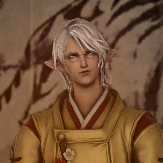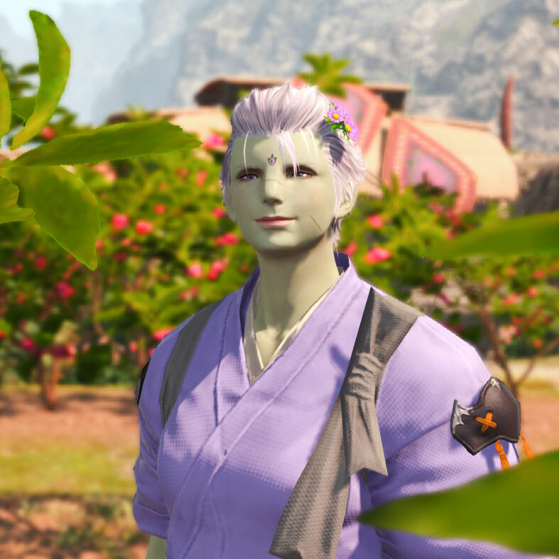 "A true taste of the Far East- W-Wait! Guigou, no!"Escaping his dark past in Kugane, Fumichiyo was at a loss in Eorzea. Hopping job to job, he simply couldn't find a place that felt comfortable; he'd been looking for something more familiar, something he had a passion for- and that was tea.Seeing a flyer by chance, he was brought to the Higanbana Apothecary. With a deep love of traditional tea and his passion of helping others, the apothecary seemed to be a perfect fit. Fumichiyo hopes to deepen his love of tea, as well as pursue further knowledge in herbal medicine.